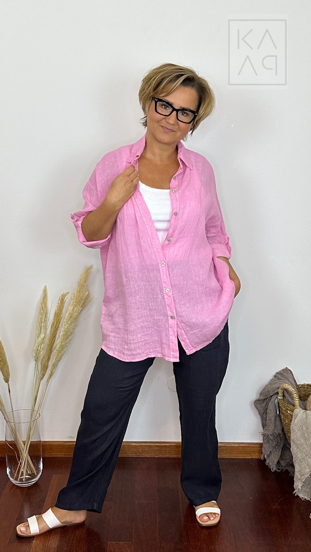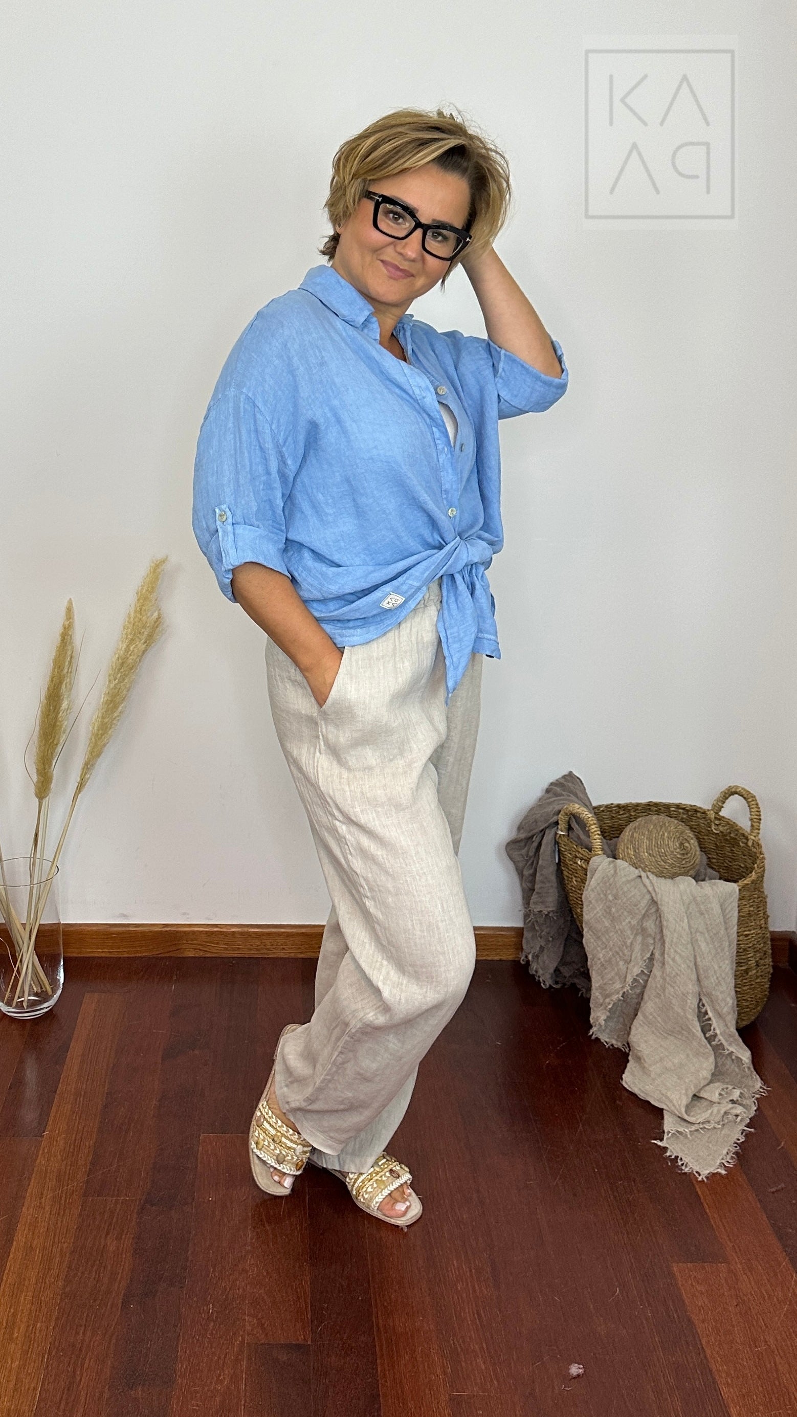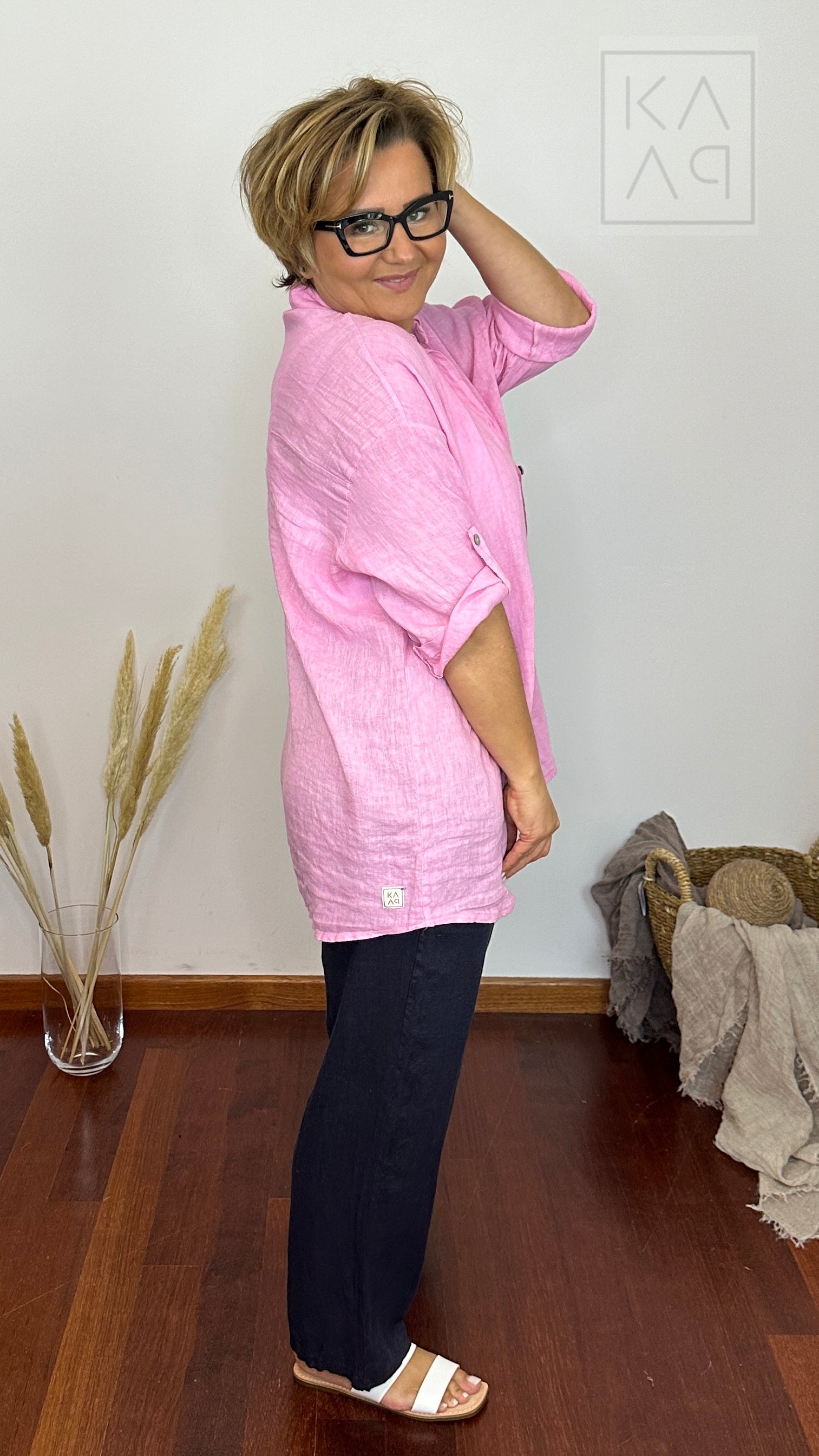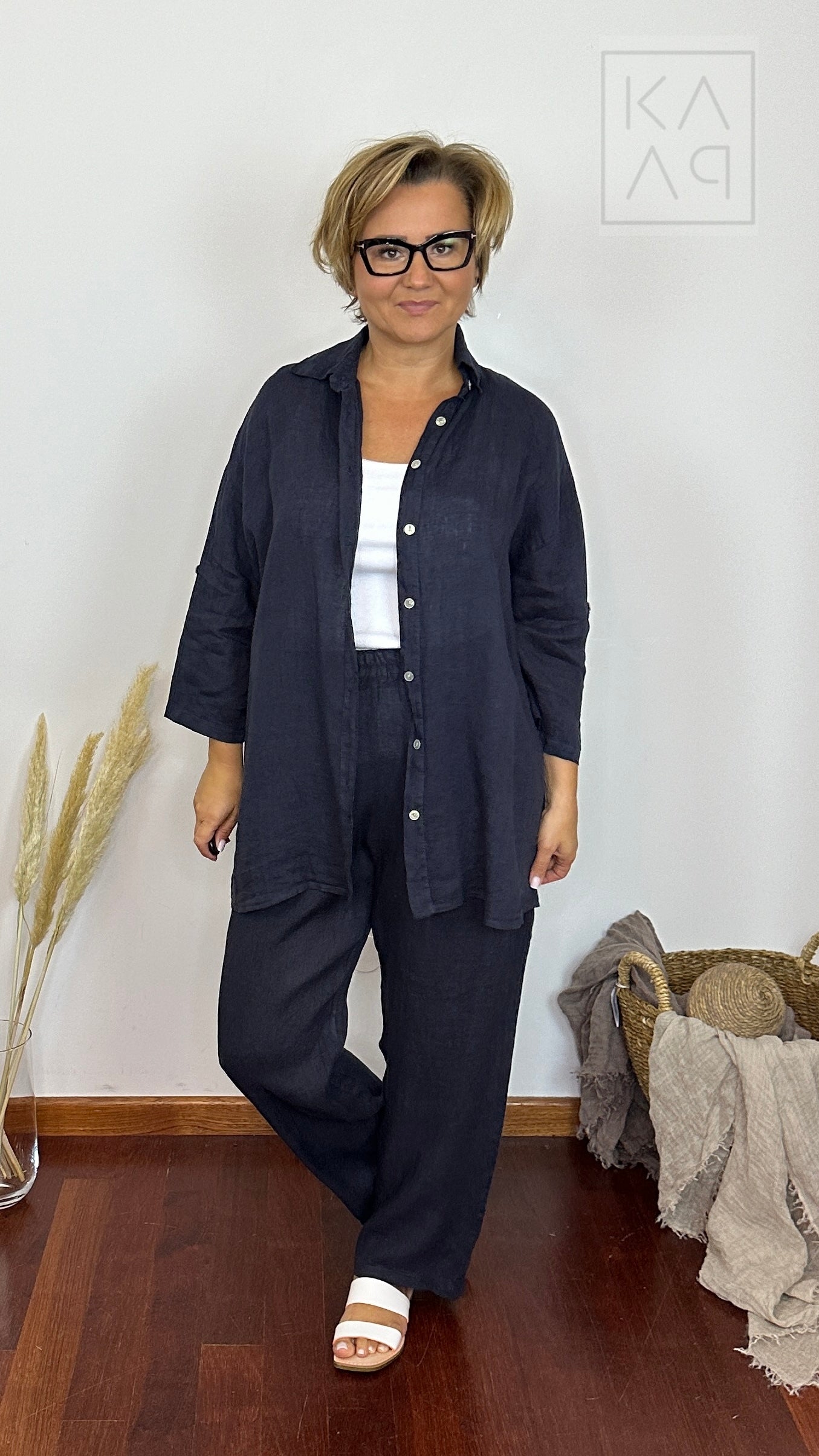 Lniana koszula damska typu oversize, która została uszyta z myślą o kobietach kochających klasykę. Prywatnie używa jej również mój Kuba :)
